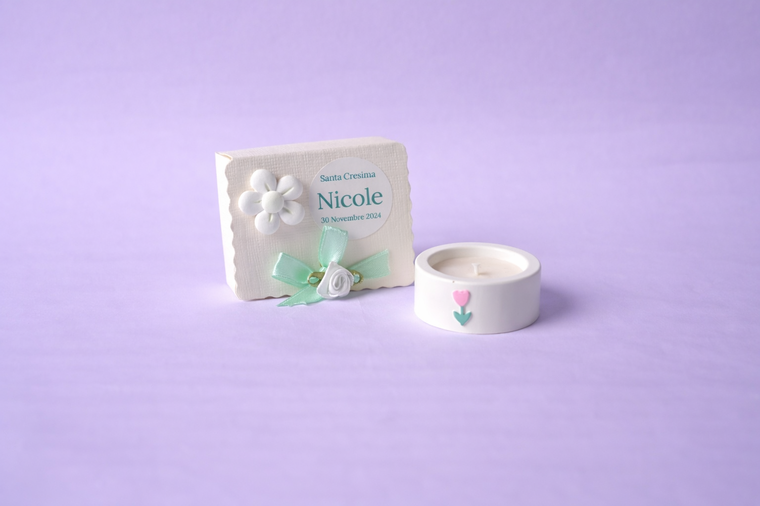 Mini Candela da 20g in Gesso Ceramico bianco con fiorellino colorato